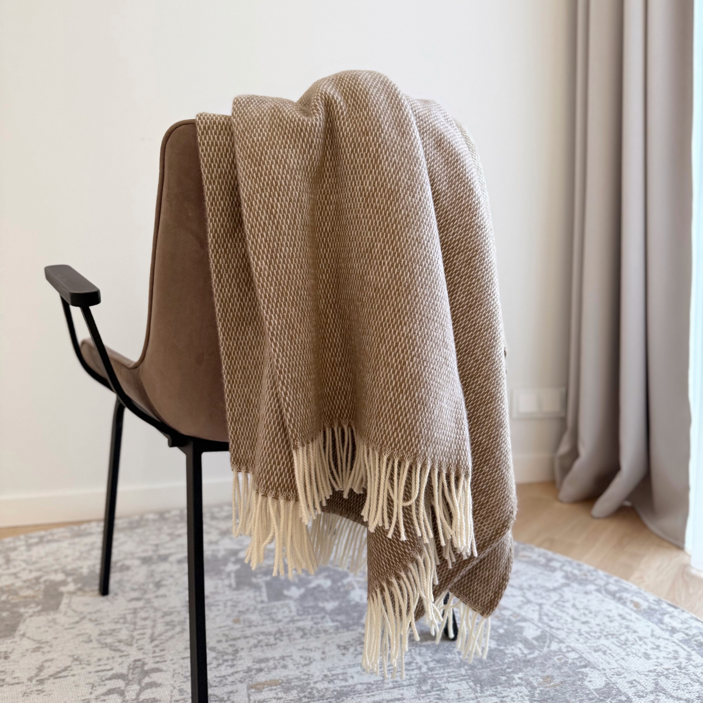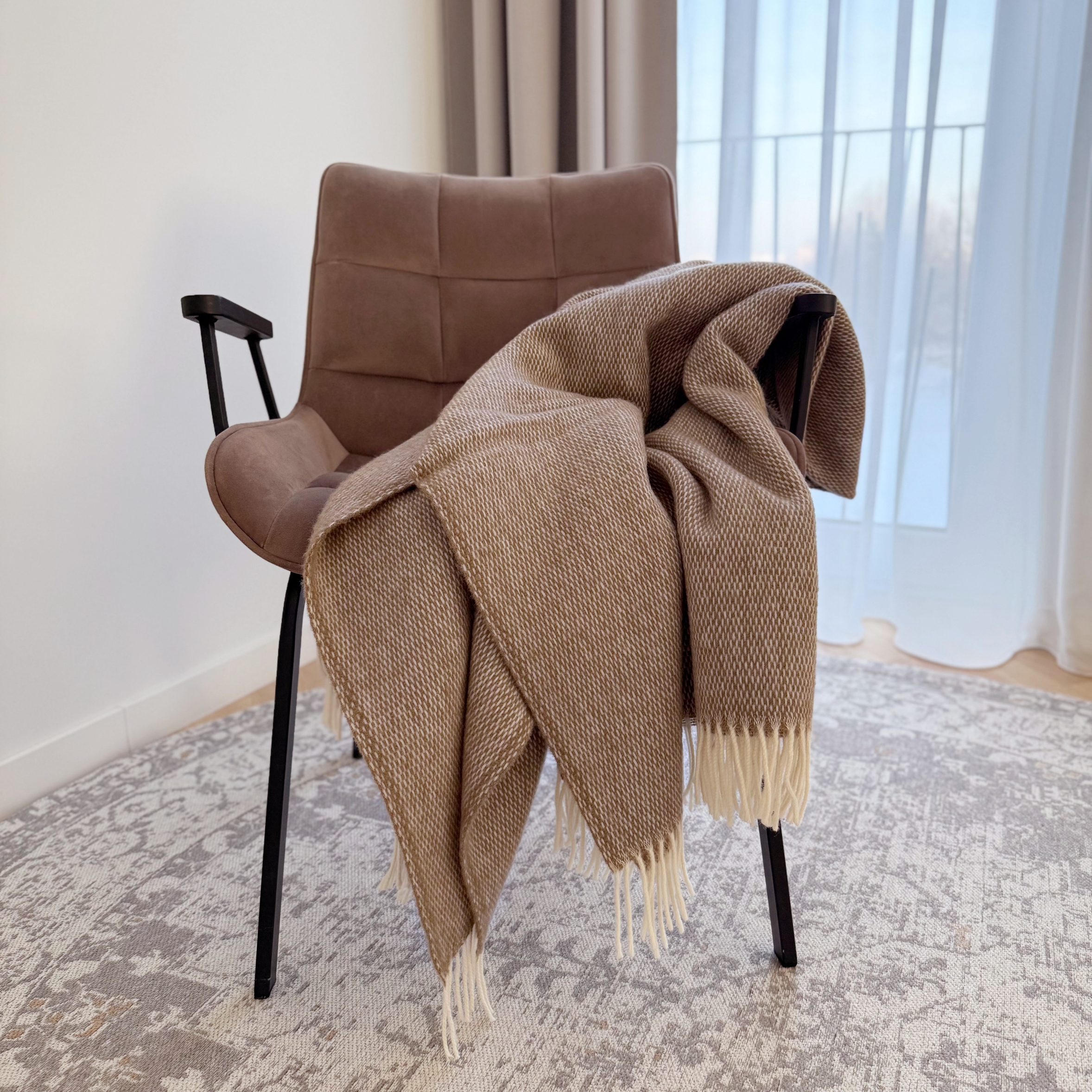 Skandinaviškos vilnos pledas, tinkamas naudoti ištisus metus. Ši vilna turi savybę palaikyti malonią šilumą- kai šalta plaukeliai sugula ir maloniai šildo, kai karšta - plaukeliai pasišiaušia ir praleidžia orą, todėl veikia kaip termoreguliatorius. Tai mažiau švelni vilna, tačiau nuostabus, pačios gamtos sukurtas produktas. Šį vilnos unikalumą jau įvertino ir rekomenduoja Skandinavijos bei Lietuvos klientai.